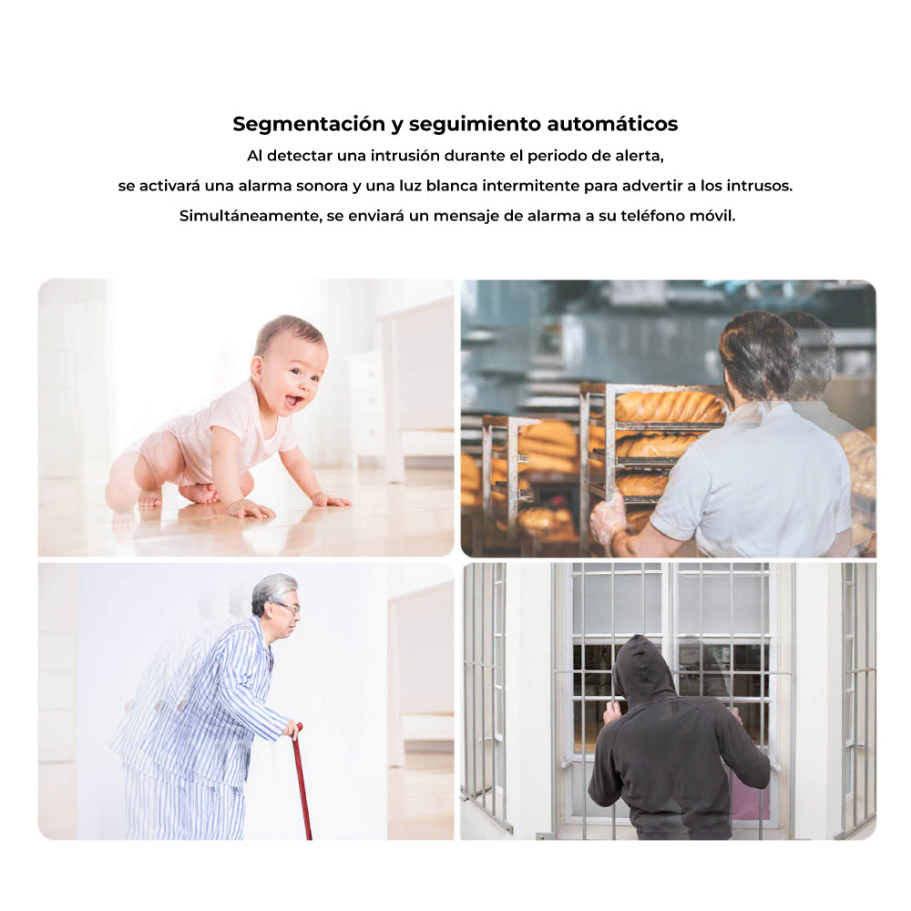 - Detección de forma humana y seguimiento inteligente: rastrea y graba automáticamente cualquier movimiento.