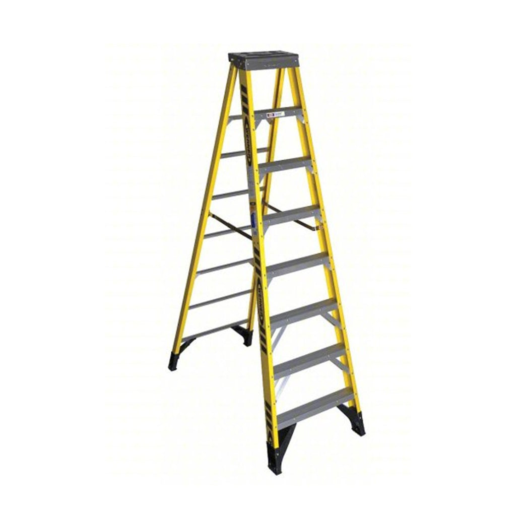* Estas escaleras de tijera con estructura en A están hechas de fibra de vidrio no conductora, ideales para electricistas y profesionales que trabajan cerca o en torno a fuentes de electricidad. También conocidas como escaleras de tijera frontales, tienen escalones en un lateral para una sola persona.