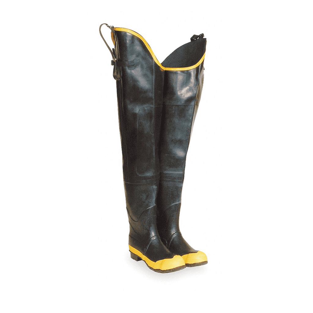 Estos vadeadores de cadera tienen una parte superior de goma resistente. Cubren las piernas hasta la cadera, pero no más allá, lo que mantiene a los trabajadores secos en aguas profundas y zonas húmedas. Son de uso general y se usan en las tareas cotidianas.
